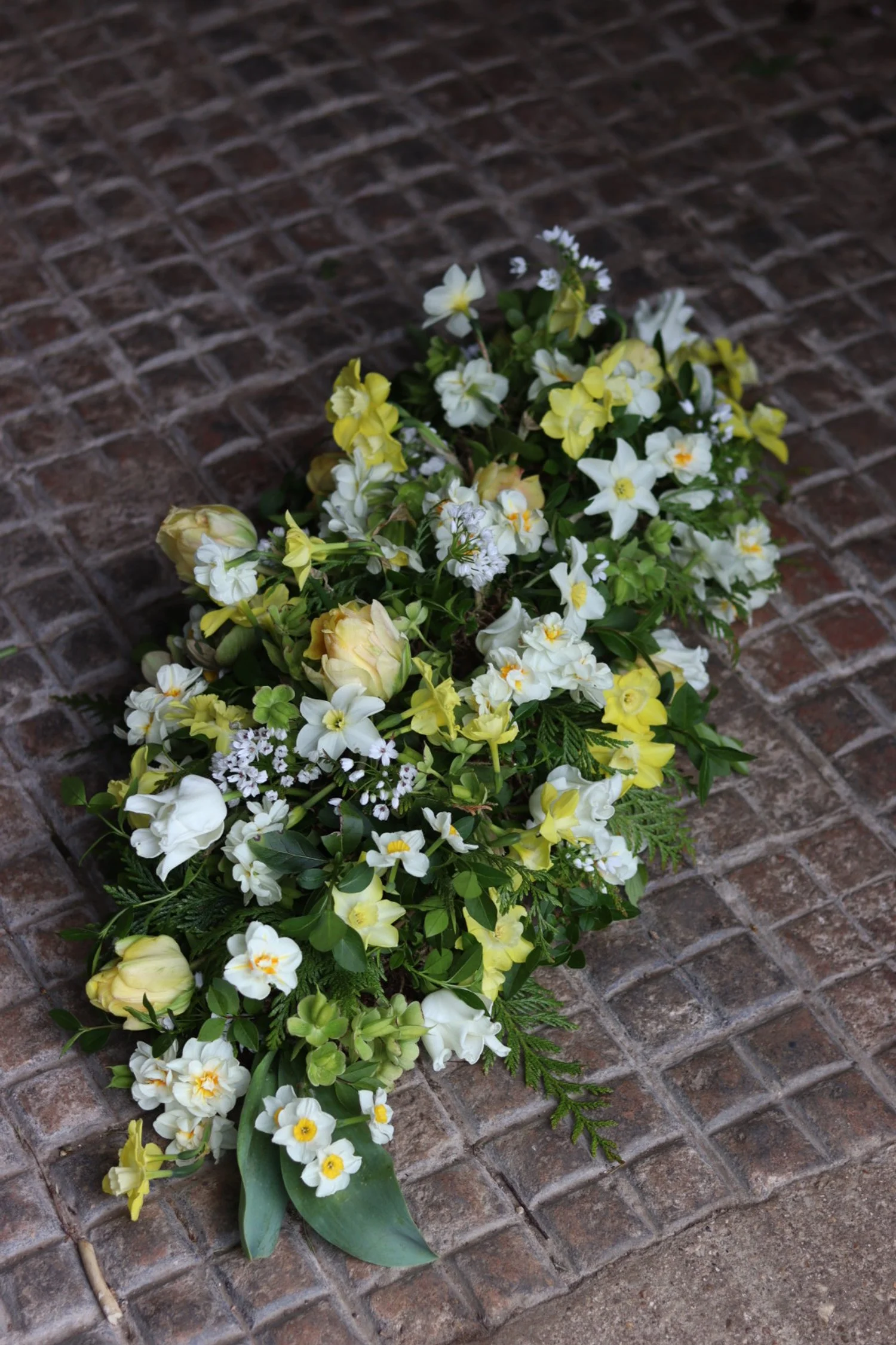 A bouquet designed to lay on the top of the coffin. Available in various sizes, with prices starting at £80.